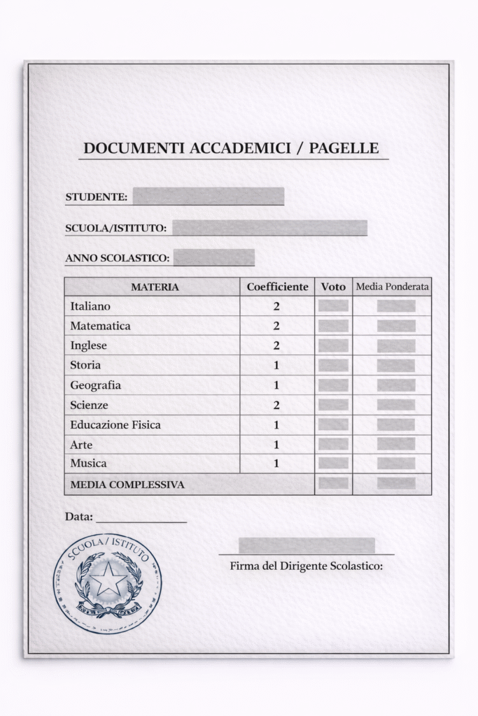 Traduzione certificata delle pagelle per pratiche scolastiche e amministrative.